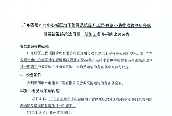 惠州市增江龍門段治理工程施工(一標(biāo)段)勞務(wù)采購比選公告……